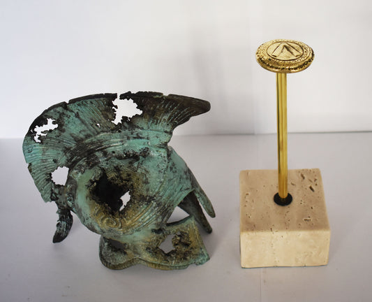 Ancient Greek Spartan Corinthian Helmet - Griffin Motif - Marble Base - Museum Reproduction - pure bronze statue
