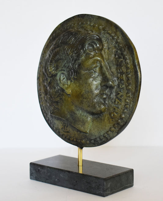 Ancient Greek Macedonian Shield - Alexander the Great - Marble Base - Museum Replica - Pure Bronze Sculpture