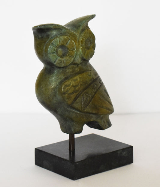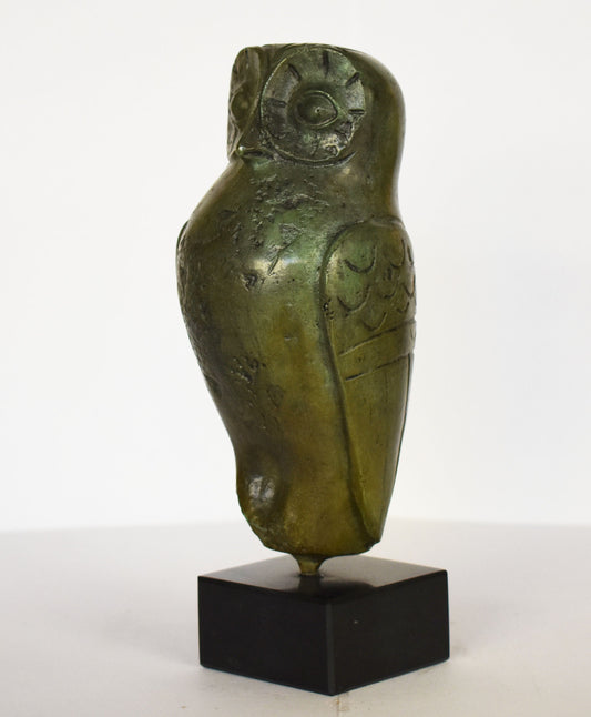 Owl of Wisdom and Intelligence - Symbol of Goddess Athena Minerva - Ancient Greece - Marble Base - Museum Replica - Pure Bronze Statue