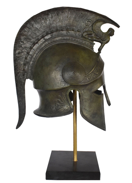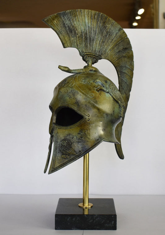 Ancient Greek Spartan Corinthian Helmet - Classic Period - Marble Base - Museum Reproduction - Pure Bronze Statue