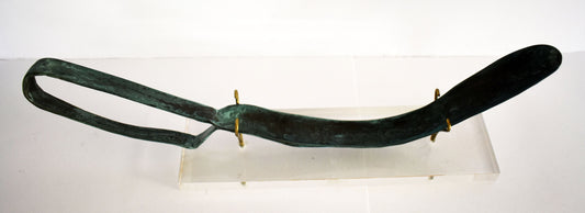 Strigil - Ancient Athlete's Equipment - Dust, Sweat and Oil Remover - Plexiglass Base - pure bronze artifact