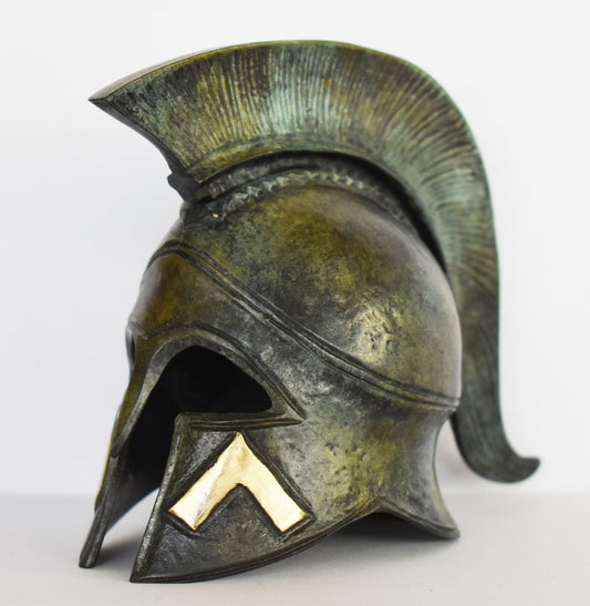 Ancient Greek Spartan Helmet - Λ Symbol - Leonidas and 300 - Thermopylae - Museum Replica - Small - Pure Bronze Statue