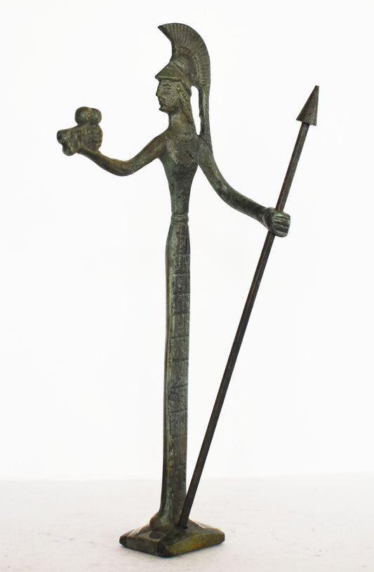 Athena Minerva with Owl and Spear - Greek Roman Goddess of Wisdom, Handicraft, Warfare - Greek Mythology - Pure Bronze Statue