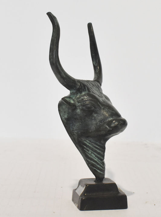 Minoan Bull Small Head - Minoan Art, Knossos Palace - marble base - pure bronze statue