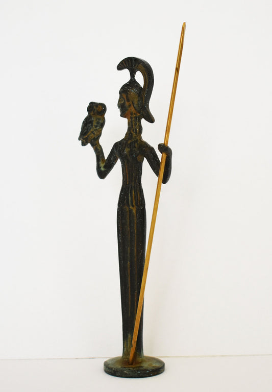 Athena Minerva with owl and spear - Greek Roman Goddess of wisdom and strategy - pure Bronze Sculpture