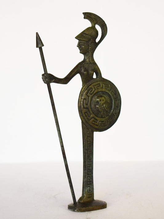 Athena Minerva with Spear and Shield - Greek Roman Goddess of wisdom, handicraft, and warfare - Greek Mythology - pure bronze statue