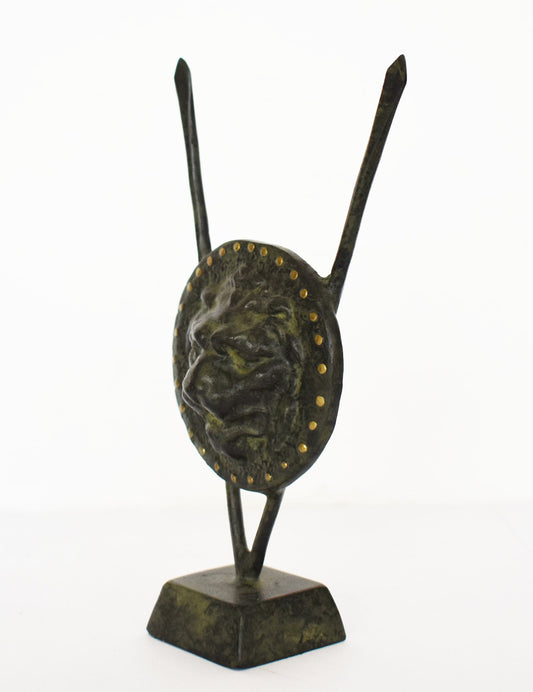 Ancient Greek Shield with Spears - Lion Head - Symbol of Courage, Nobility, Royalty, Strength - Museum Replica - pure Bronze Sculpture