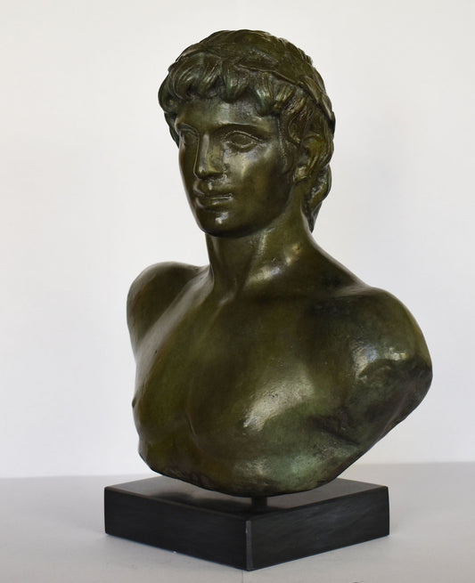 Apollo - Head Bust - Greek Roman God of Music, Truth, Prophecy, Healing, Sun and light, Poetry - Pure Bronze Statue