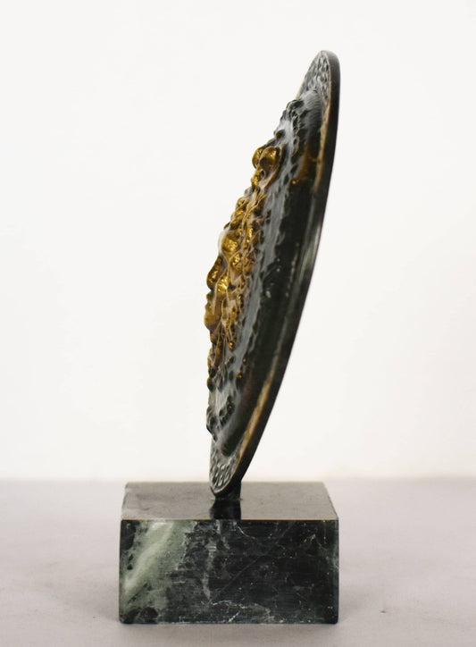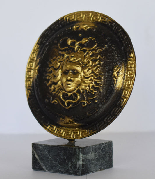 Ancient Greek Medusa Shield - Apotropaic Symbol - Marble Base - Museum Replica - pure Bronze Sculpture