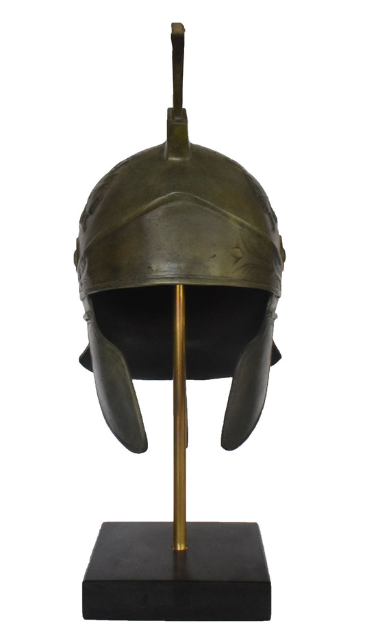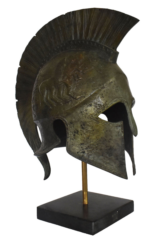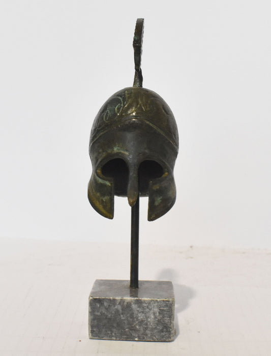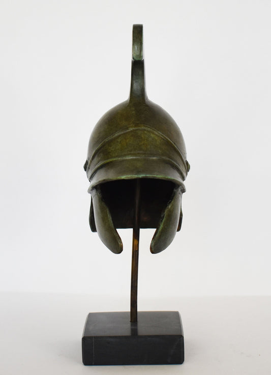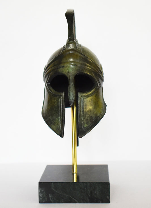 Ancient Greek Spartan Corinthian Helmet - Classic Period - Marble Base - Museum Reproduction - Pure Bronze Statue