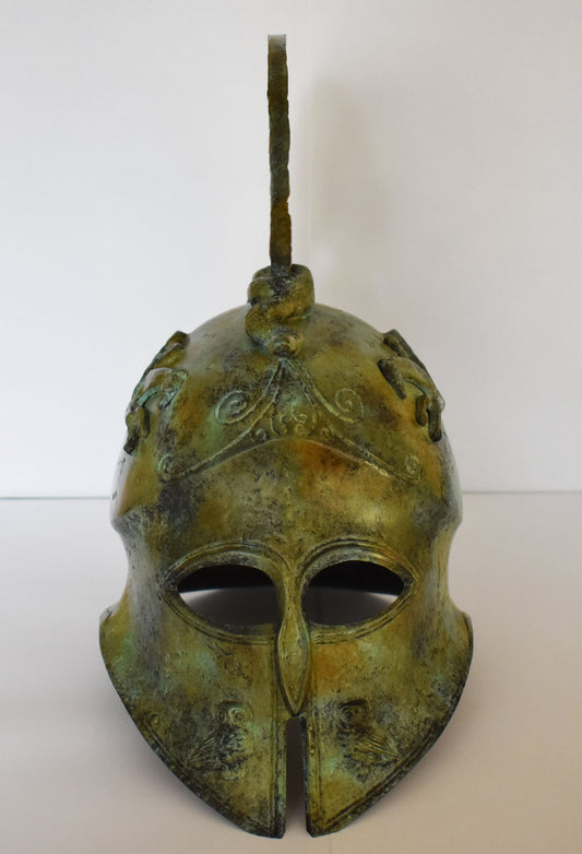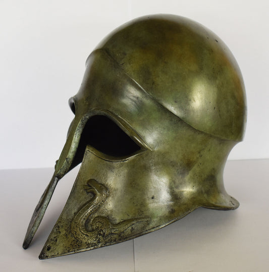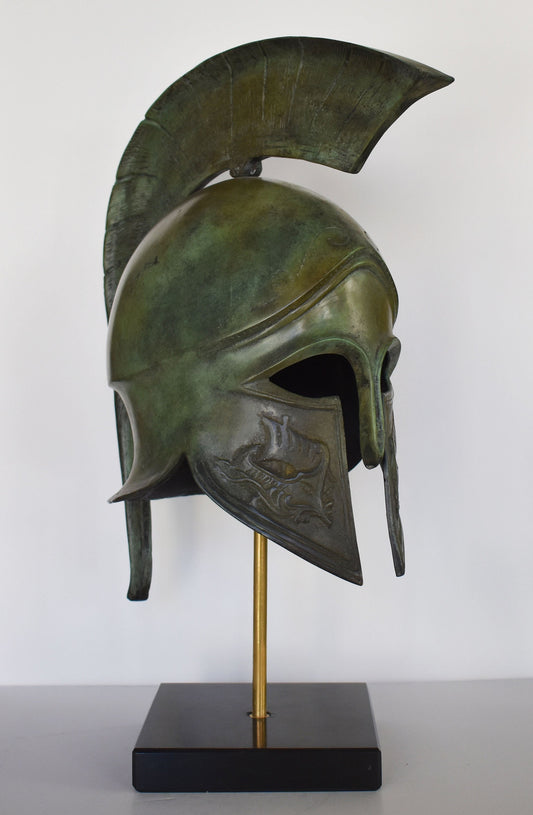 Ancient Greek Spartan Corinthian Helmet - Pure Bronze Statue