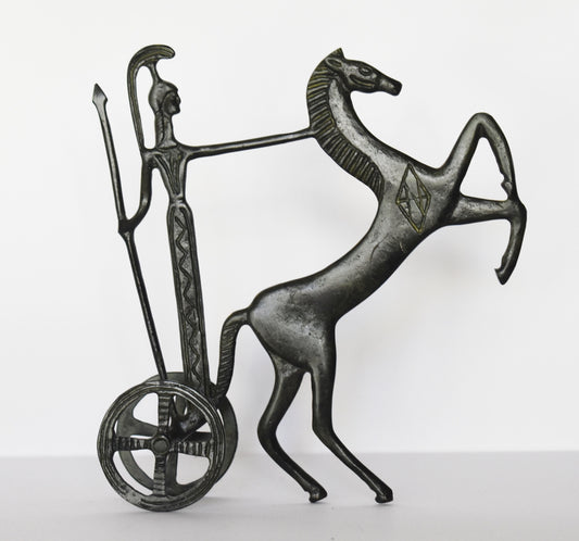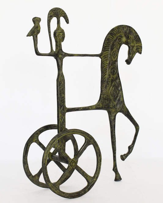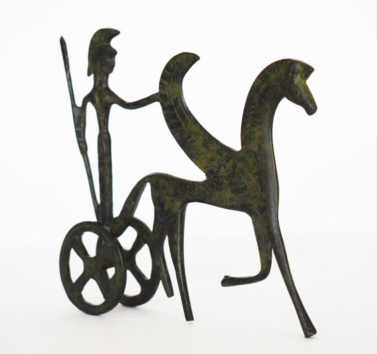 Ancient Greek Chariot - goddess Athena with spear - pure Bronze Sculpture