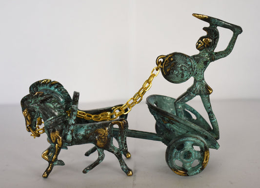 Achilles on Chariot- Greek Hero - Son of Thetis and Peleus - Trojan War - Homer's Iliad - pure bronze statue