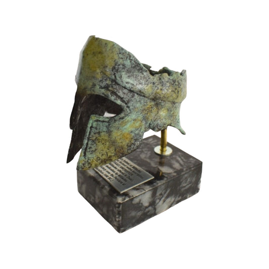Miltiades Helmet - Athenian general of the Battle of Marathon - Olympia Museum - Replica - Marble Base - pure Bronze Sculpture