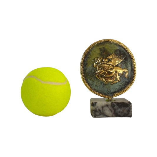 Ancient Greek Spartan Shield - Pegasus - Mythical Immortal Winged Divine Horse - Marble Base - pure Bronze Sculpture