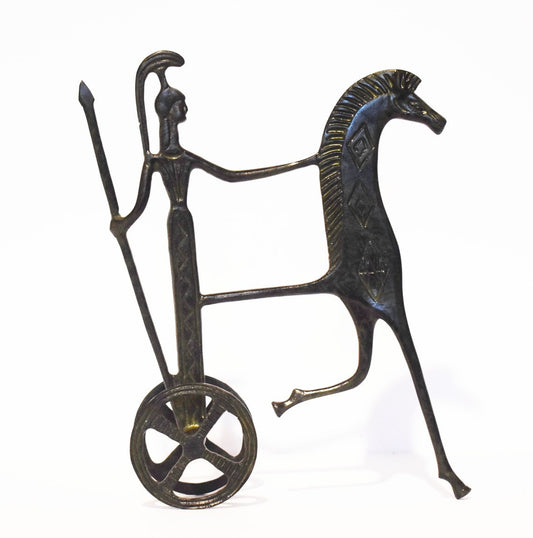 Ancient Greek Chariot - Goddess Athena holding a spear - pure Bronze Sculpture Active