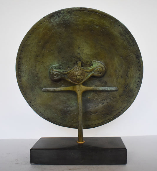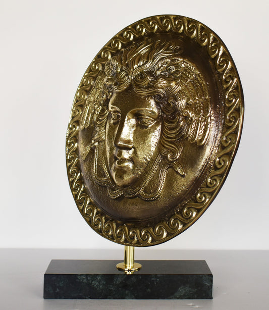 Ancient Greek Shield - Medusa Head - marble base - Museum Replica - pure Bronze Sculpture