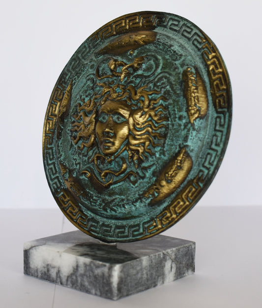 Ancient Greek Medusa Shield - Symbol of Strength and Power - Marble Base - Museum Replica - Pure Bronze Sculpture