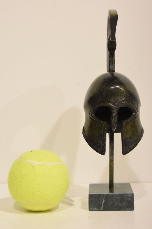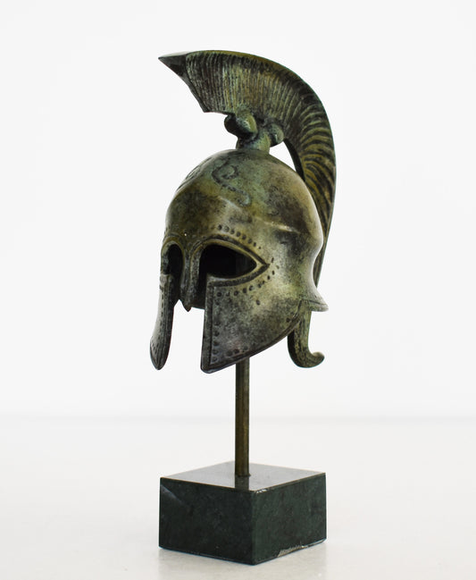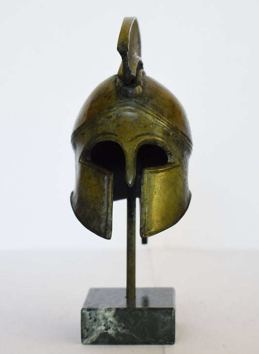 Ancient Greek Spartan Corinthian Helmet - Classic Period - Marble Base - Handmade - Museum Reproduction - Pure Bronze Statue