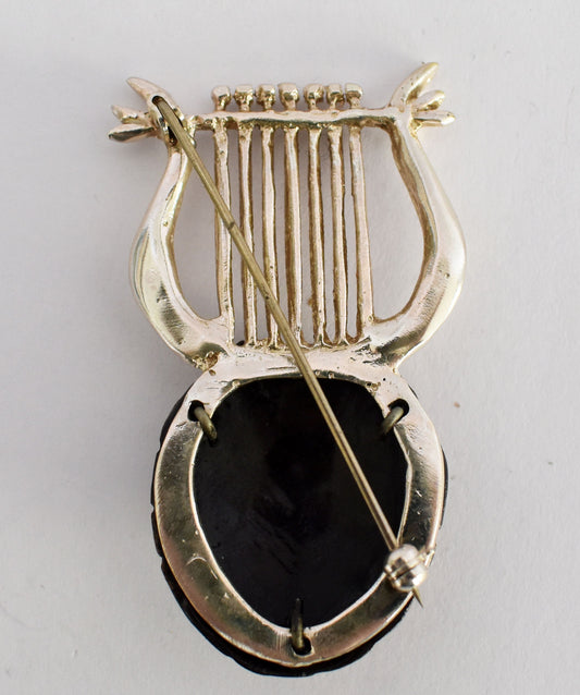Apollo's Lyre - Musical Instrument Miniature - Ancient Greece - Brooch Pin - Silver Plated and Bronze Plated Artifact