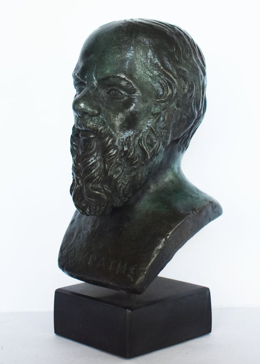 Socrates - Ancient Greek Philoshopher - Marble Base - Museum Reproduction - Head Bust- Bronze Colour Effect