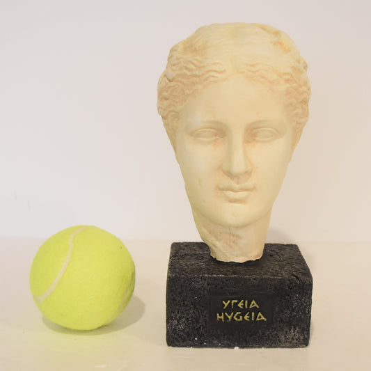 Hygieia - Greek Goddess of Health, Cleanliness and Hygiene - Marble Base - Museum Reproduction - Head Bust - Casting Stone