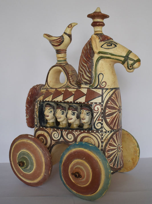 Trojan Horse on Wheels - Hollow Greek Horse - Trojan War - Homer’s Iliad - Representation of Ancient Greek Vessel - Ceramic Artifact