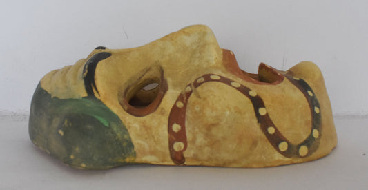 Ancient Greek Theatrical Mask - Tragedy - Yellow Clay - 500 BC - Miniature - Museum Reproduction - Ceramic Artifact