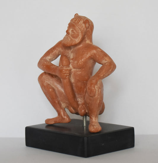 Pottery oil lamp in the shape of a satyr with an enormous phallus - Pompeii, 1st century A.D. - Museum Reproduction - Ceramic Artifact