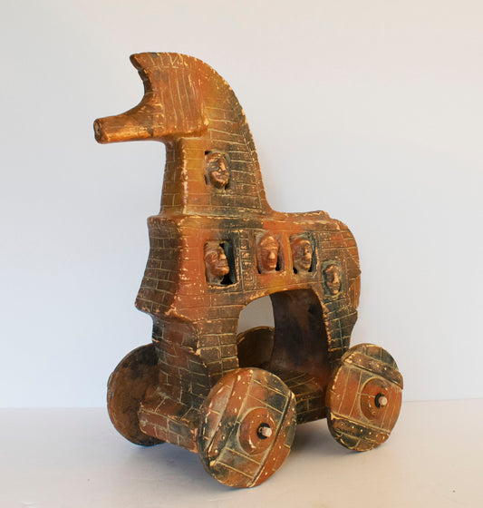 Trojan Horse on Wheels - Huge Hollow Greek Horse - Trojan War - Homer’s Iliad - Representation of Ancient Greek Vessel - Ceramic Artifact