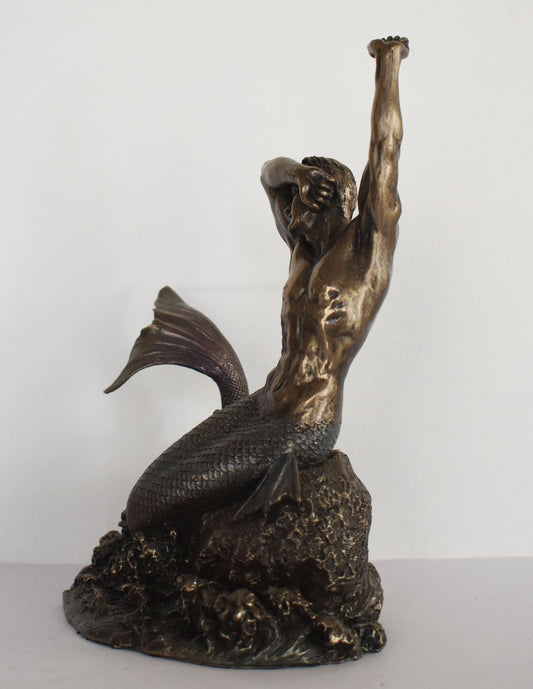 Triton Stretching on Rock - Merman - Demigod of the sea - Son of Poseidon and Amphitrite - Sculpture Figurine - Cold Cast Bronze Resin