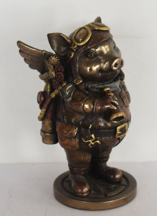 Pig Statue - Explorer - Steampunk - Modern Art - Decoration - Cold Cast Bronze Resin
