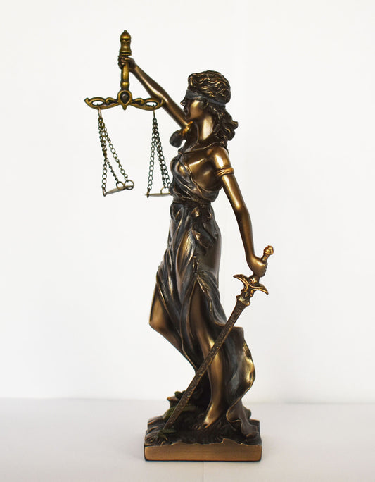 Themis Justitia - Greek Roman Goddess of Divine Law and Order, Fairness, Natural Law and Custom - Cold Cast Bronze Resin