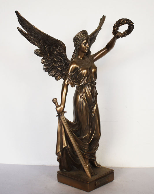 Nike Victoria Winged - Greek Roman Goddess of Victory - Close Companion of Zeus - Rewards the Victors by a Wreath - Cold Cast Bronze Resin