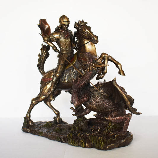 Saint George and the Dragon - Legend - Rescues the Princess as the next Offering - Cold Cast Bronze Resin