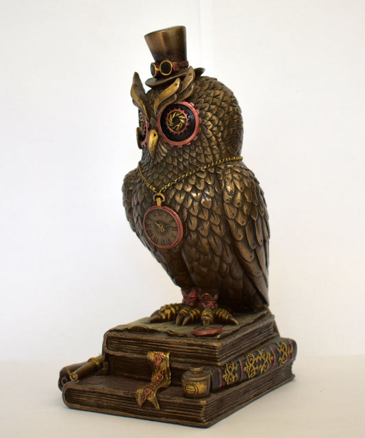 Owl of Wisdom Statue - Reader - Steampunk - Modern Art - Decoration - Cold Cast Bronze Resin