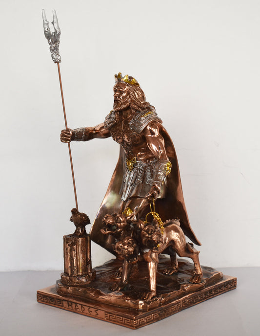 Hades and Cerberus - Greek Roman God of the Dead, King of the Underworld - Three-Headed Dog Guarding the Gates - Copper Plated Alabaster