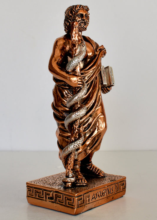 Asclepius - Ancient Greek God of Medicine and Doctors - Son of Apollo -Father of Hygeia, Iaso, Panacea, Aegle - Copper Plated Alabaster