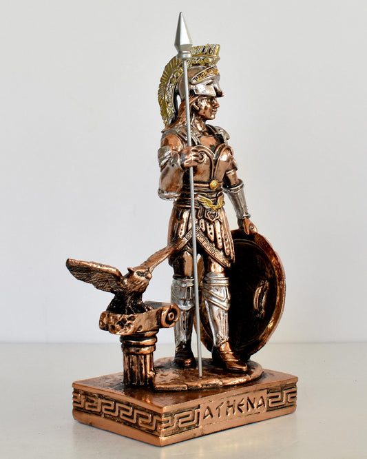 Athena Minerva - Greek Roman goddes of Wisdom, Strength, Strategy, Courage, Inspiration, Arts, Crafts, and Skill - Copper Plated Alabaster