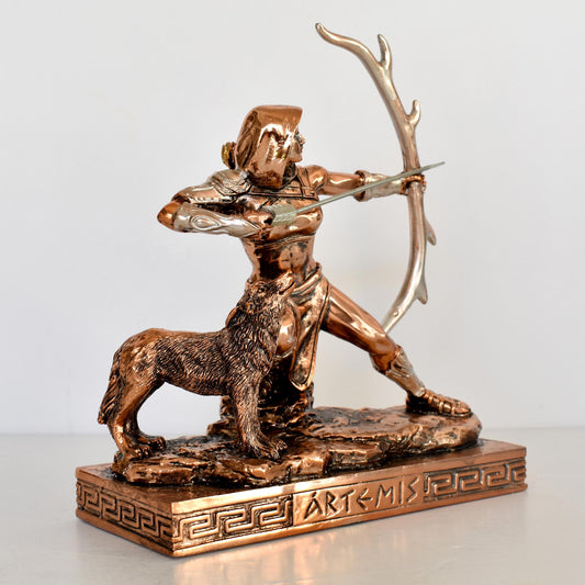 Artemis Diana – Greek Roman Goddess of Hunt, Wilderness, Wild Animals, the Moon, and Chastity - sister of Apollo - Copper Plated Alabaster