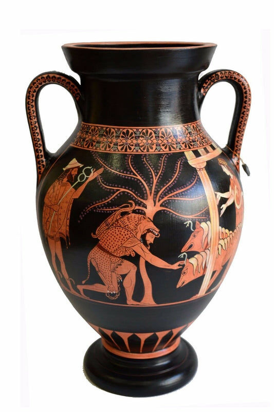 Hercules and Cerberus - Attic Red Figure Amphora Vase - 520 BC - Andokides Painter - Louvre Museum - Reproduction