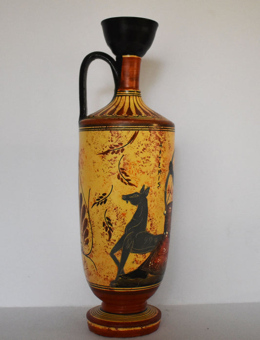 Lekythos - Storing Oil and Funerary Rites Vessel - Artemis - Goddess of Animals, Hunting - Floral design - Ceramic Vase