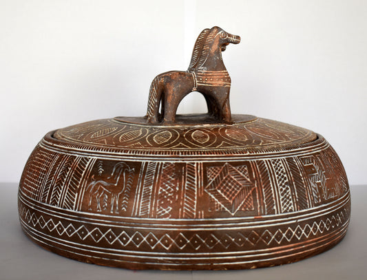 Pyxis Geometric Vase - Cylindrical Box - Four Horses - Athens, Attica - Geometric, 800 BC - Museum Reproduction - Ceramic Artifact