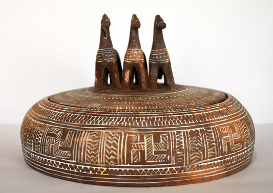 Pyxis Geometric Vase - Cylindrical Box - Three Horses - Athens, Attica - Geometric, 800 BC - Museum Reproduction - Ceramic Artifact