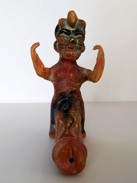 Pottery oil lamp in the shape of a satyr with an enormous phallus - Pompeii, 1st century A.D. - Museum Reproduction - Ceramic Artifact