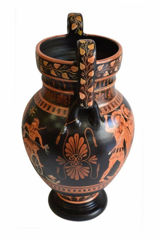 Achilles on Chariot - Poseidon and Goddess Athena - Amphora Vase - Museum Replica