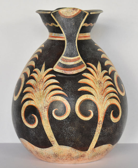 Amphora - White and Red Palm Trees on Black - Kamares ware - Minoan - 1800-1750 BC - Crete - Ceramic Vase