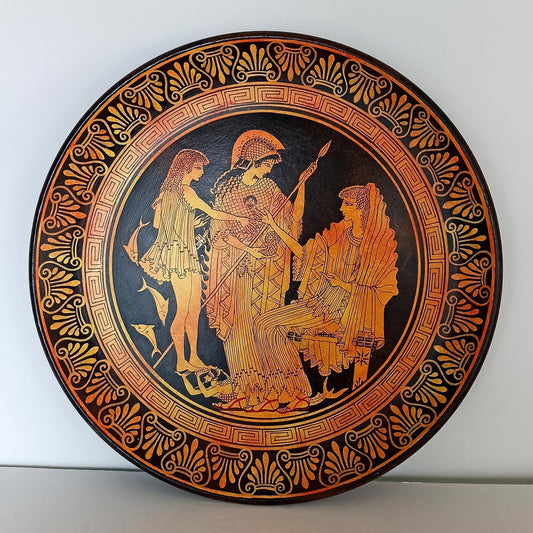 Amphitrite, Athena and Theseus - Red Figure - 500-490 B.C. - Louvre Museum - Replica - Ceramic plate - Handmade in Greece
