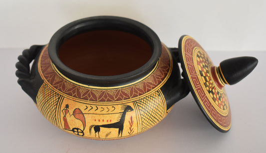 Geometric period Pyxis - Man on a Chariot - Meander Design - Attica, Athens - Ceramic Vase