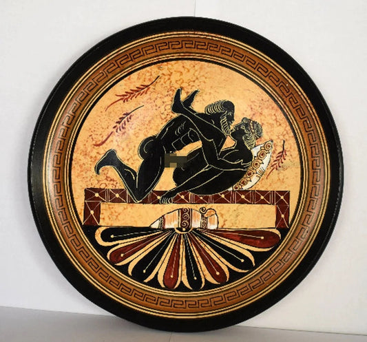 Ancient Erotic Scene - Athens, 500 BC - Replica of Red Figure Vessel - Ceramic plate - Meander design - Handmade in Greece